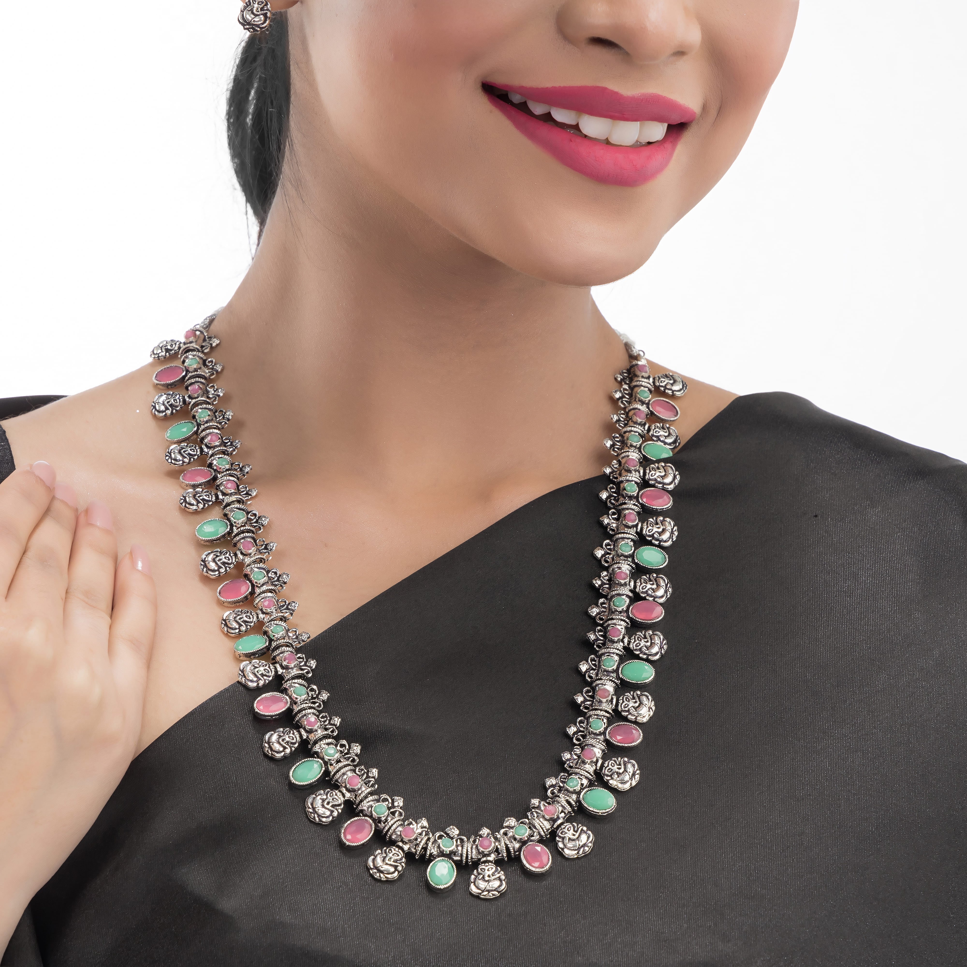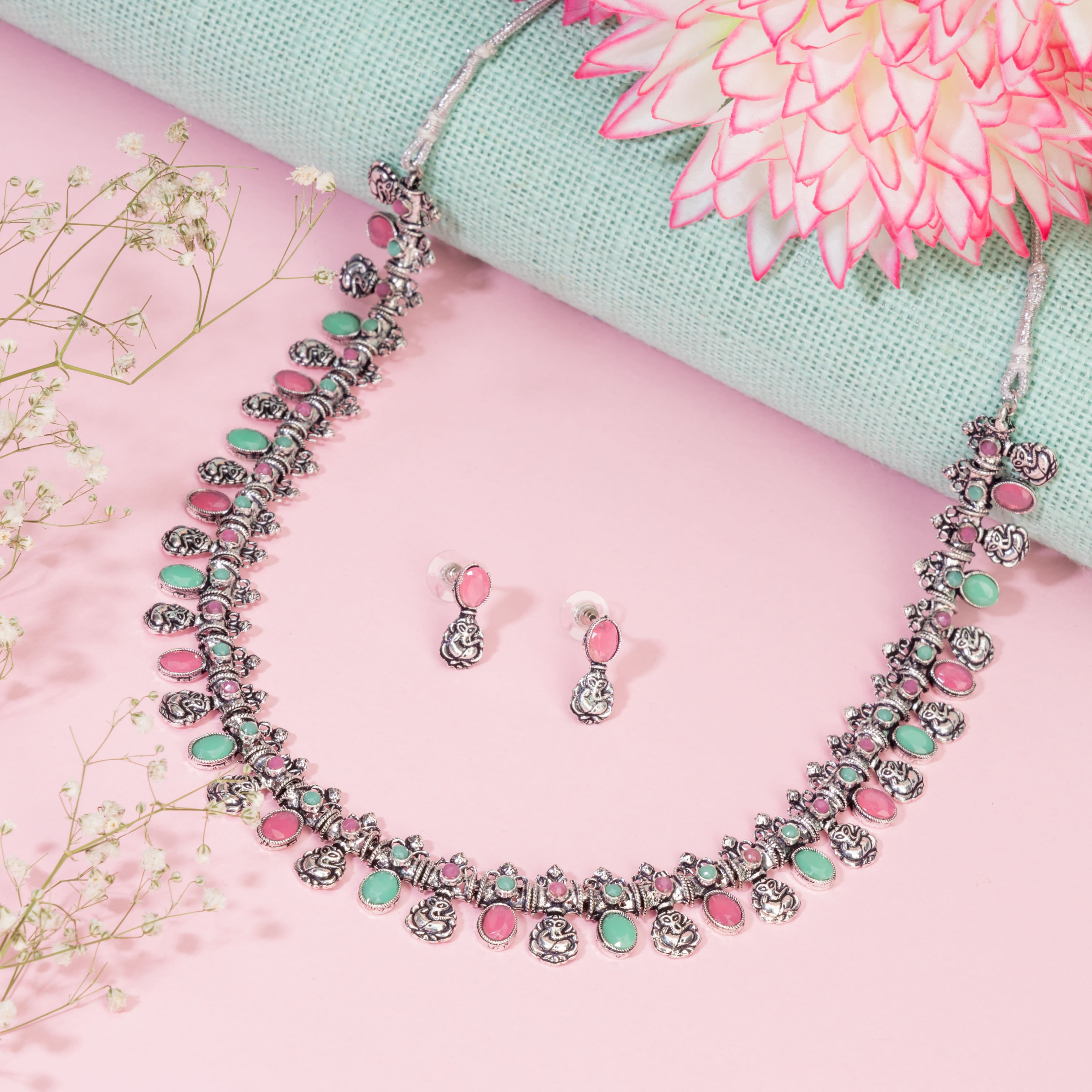 Make a bold statement with our Oxidised Jewelry Collection. Known for its unique charm and rustic appeal, each piece is designed to reflect a blend of tradition and contemporary style. Perfect for adding an edgy, vintage touch to your casual or ethnic outfits, this collection brings out the artistry in every detail.