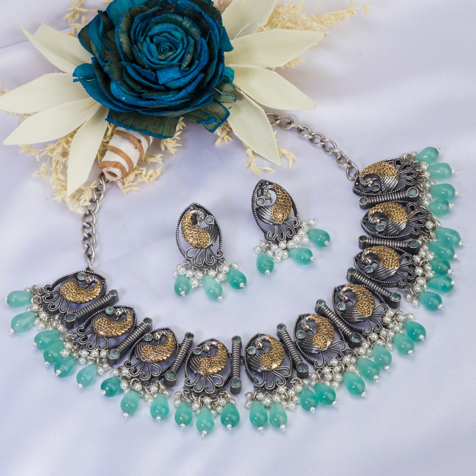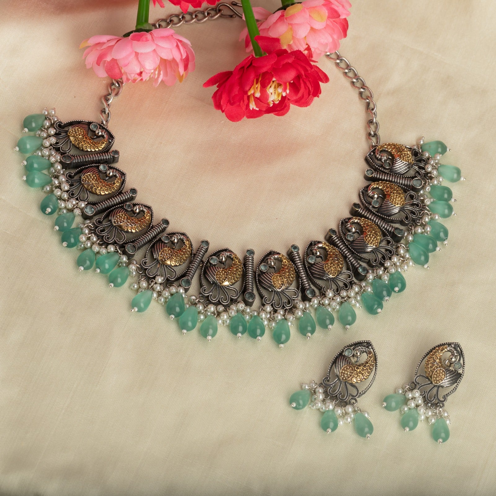 Enhance your elegance with our Short Necklace Set. This beautifully crafted piece is perfect for adding a touch of sophistication to any outfit, whether for daily wear or a special occasion. Made with attention to detail, it's designed to offer a balance of traditional charm and modern style. Pair it with matching earrings for a complete look.