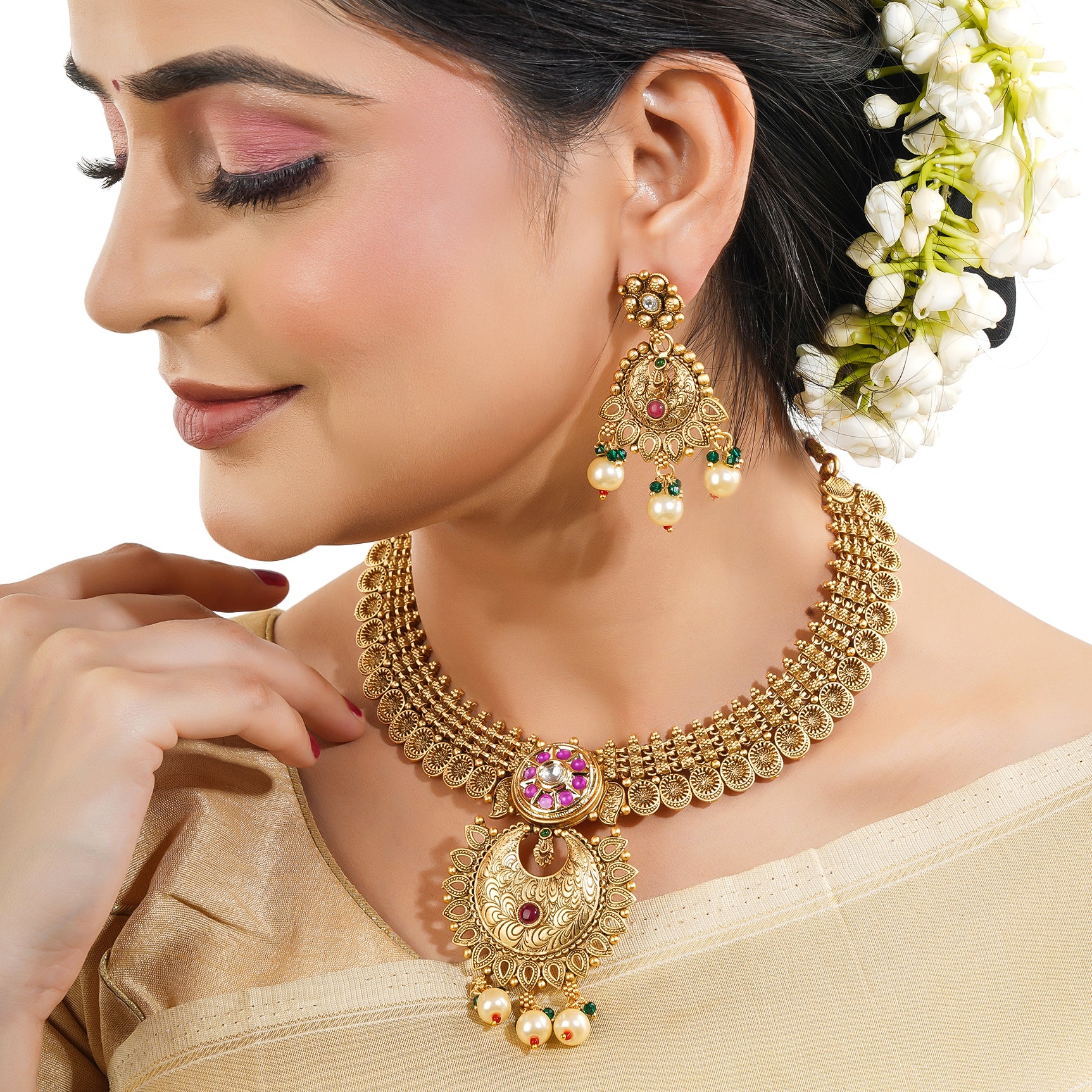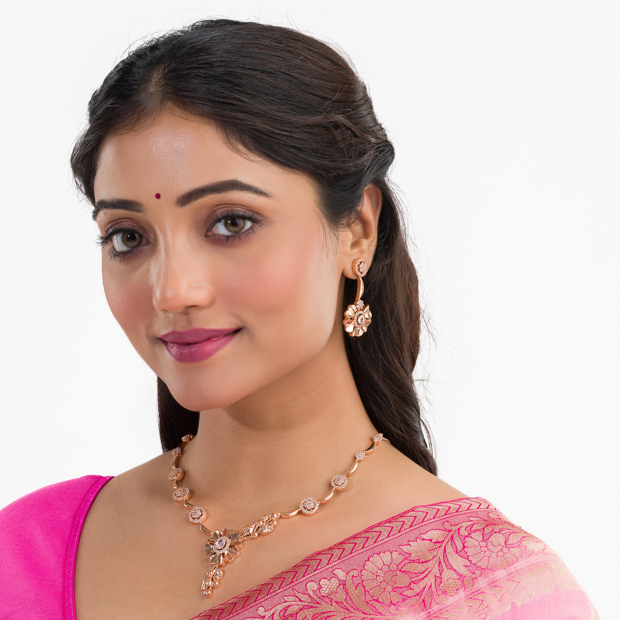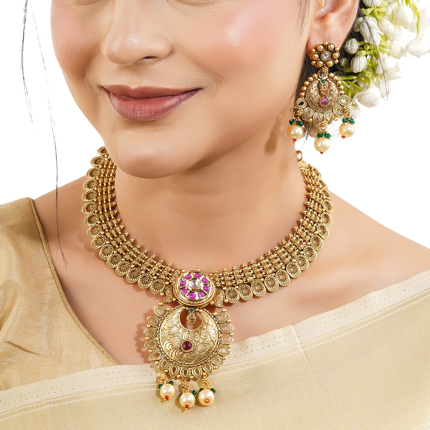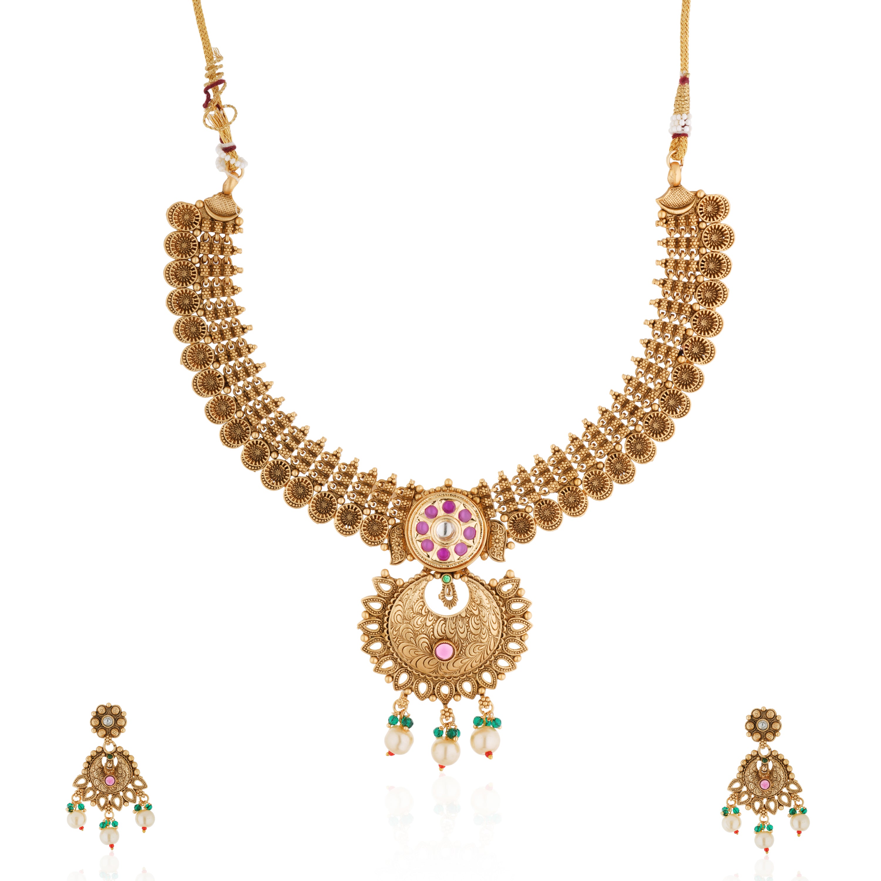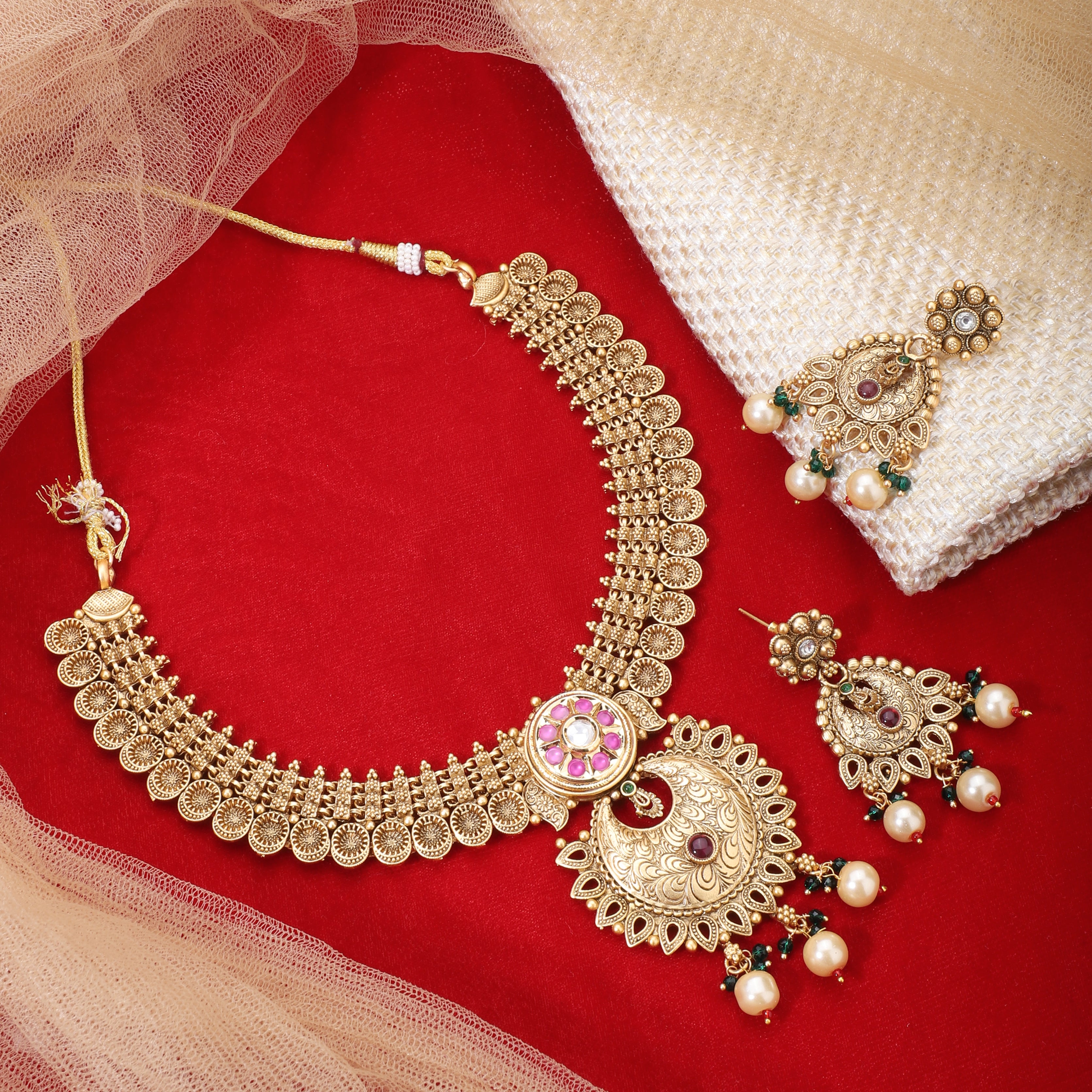Enhance your elegance with our Short Necklace Set. This beautifully crafted piece is perfect for adding a touch of sophistication to any outfit, whether for daily wear or a special occasion. Made with attention to detail, it's designed to offer a balance of traditional charm and modern style. Pair it with matching earrings for a complete look.